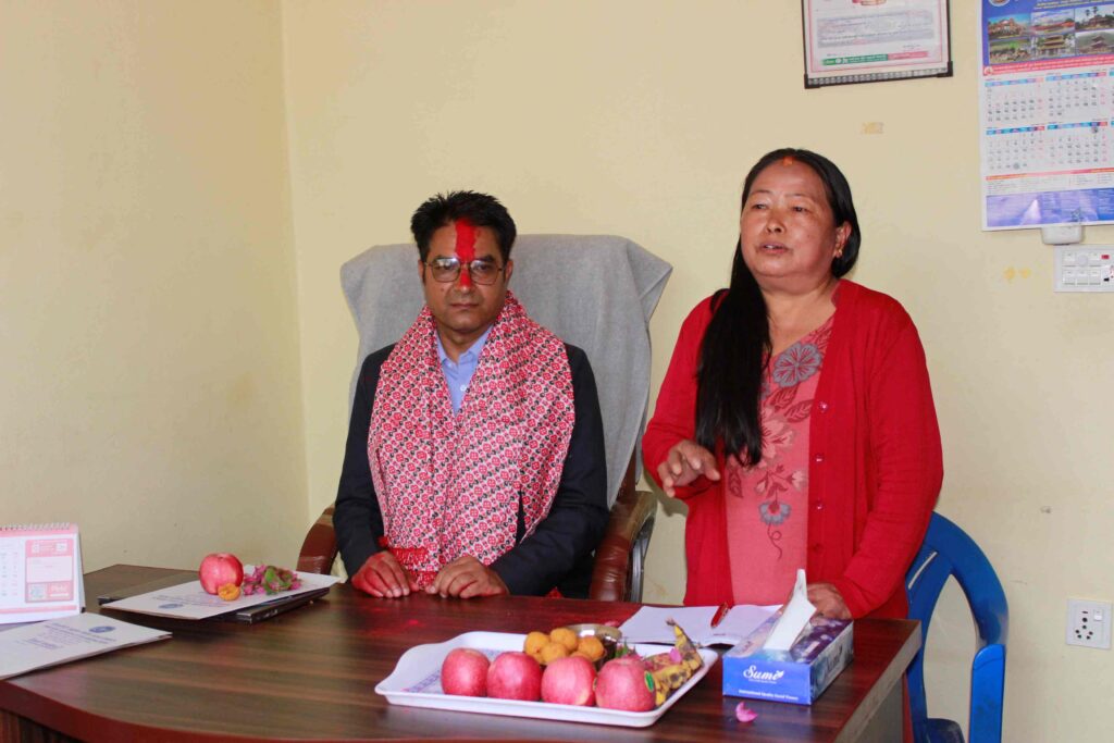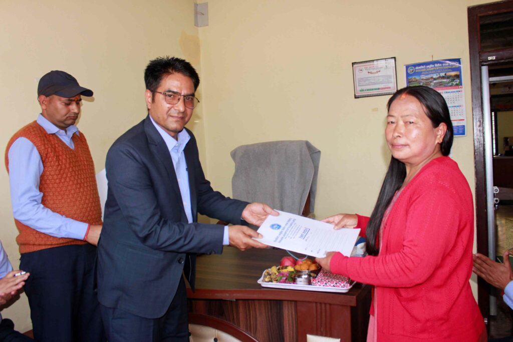 नवनियुक्त प्रमुख कार्यकारी अधिकृत हेमराज जाेशीलाई सञ्चालकहरु वरिष्ठ अधिवक्ता हरिप्रसाद शर्मा, जीवन आचार्य, चेतनारायण सापकाेटा तथा केन्द्रिय कार्यालयका विभागिय प्रमुखहरुले खादा र अविर लगाएर स्वागत तथा सफल कार्यकालकाे शुभकामना प्रदान गर्नुभएकाे थियाे । नव नियुक्त प्रमुख कार्यकारी अधिकृतकाे लघुवित्त क्षेत्रमा करिव २२ वर्षकाे कार्यअनुभव रहेकाे छ ।